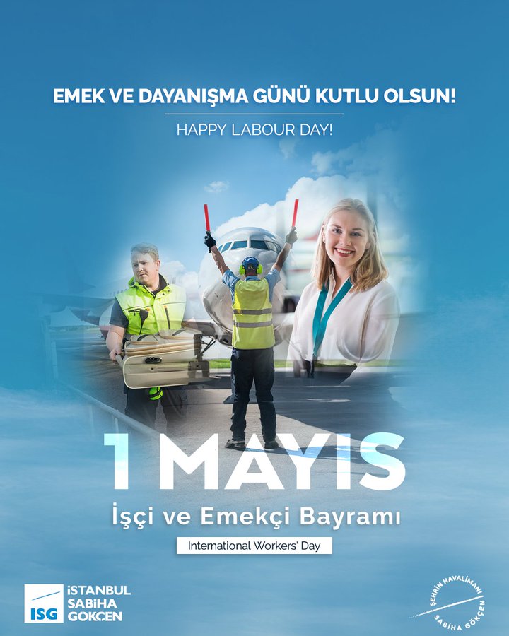 Havalimanımızı başarıdan başarıya taşıyan; büyümesi, gelişmesi ve hedeflerine ulaşmasında emek ve alın terleriyle önemli pay sahibi olan çalışma arkadaşlarımızın 1 Mayıs Emek ve Dayanışma Günü’nü tebrik ediyoruz. Emeğin kutsallığı etrafında birleştiğimiz bu özel bayram, daha iyi bir gelecek için çalışan herkese kutlu olsun!