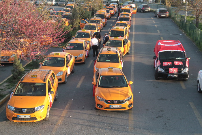 Başbakan Binali Yıldırım İstanbul Sinan Erdem Spor Salonu’nda katılacağı Erzincanlılarla buluşma toplantısına gitmek için geldiği Atatürk Havalimanı çıkışında taksiciler ‘Evet’ konvoylu ile destek verdi.