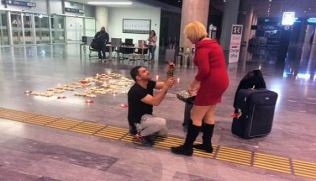 Aşçı Fatih Zencir, İngiltere’nin başkenti Londra yaşayan ve süpermarket müdürü olan Faiza Drid’e geçen 18 Nisan’da Milas- Bodrum Havalimanı Dış Hatlar Bölümü’nde kontrol noktasının çıkışında yere çiçekler ve mumlarla İngilizce ’Will you marry me’ (Benimle evlenir misin) yazarak karşılayıp sürpriz evlenme teklifi yapmıştı.