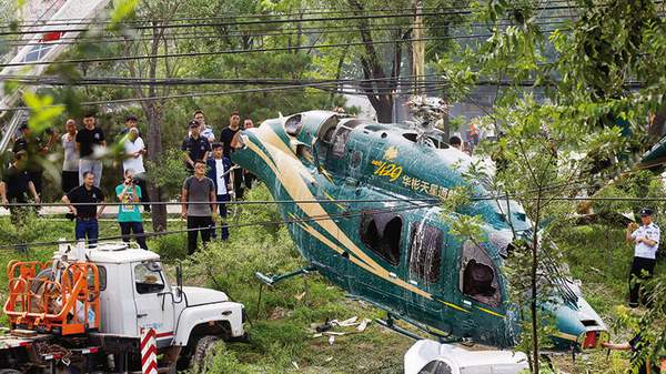 Çin’in başkenti Pekin’de bir helikopter, çok sayıda insanın bulunduğu bir parkın yanındaki boş alana çakıldı.