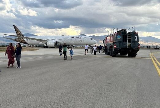 Hindistan’a ait Air Vistara firmasına ait Hindistan-Almanya seferini yapan yolcu uçağı, yapılan bomba ihbarı nedeniyle Erzurum Havalimanı’na acil iniş yaptı.