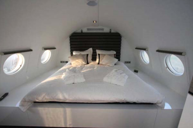 Hollanda’da Teuge Havaalanı’nda uçak görünümünde tasarlanan bu otel görenleri kendine hayran bırakıyor. Tüm lüks ayrıntıların düşünüldüğü otelde jakuzi hatta sauna bile mevcut.