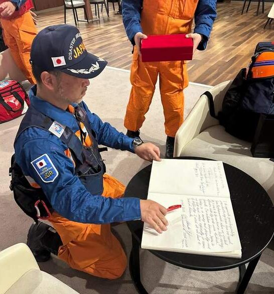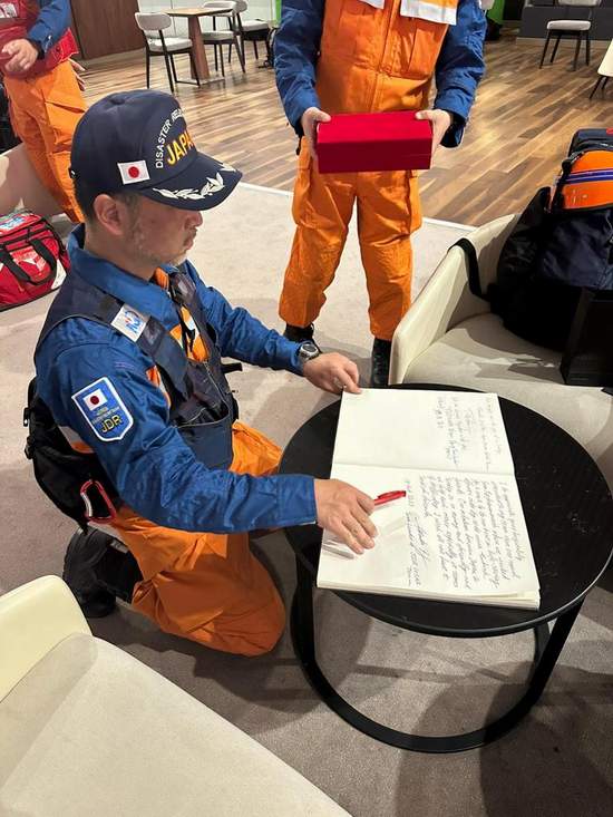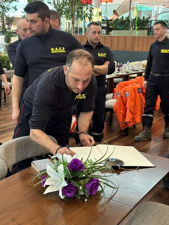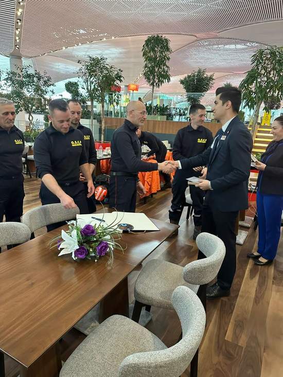 Bununla beraber arama kurtarma ekipleri İGA Lounge’da özel olarak ağırlanırken, alanda oluşturulan özel bölgede hatıra defterine mesajlarını yazdı. İGA Buggy ile uçak kapılarına kadar götürülen ekiplere hatıra olarak nazar boncuğu ve üzerinde “teşekkürler” yazan kupa hediye edildi.