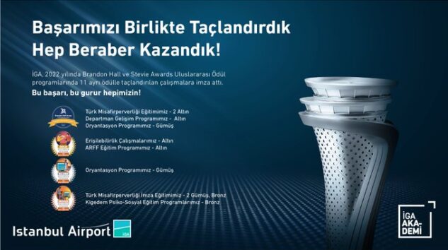 İGA, 2022 Brandon Hall ve Stevie Awards Uluslararası Ödül programlarında 11 ayrı ödülle çalıştırılan çalışmalara imza attı.