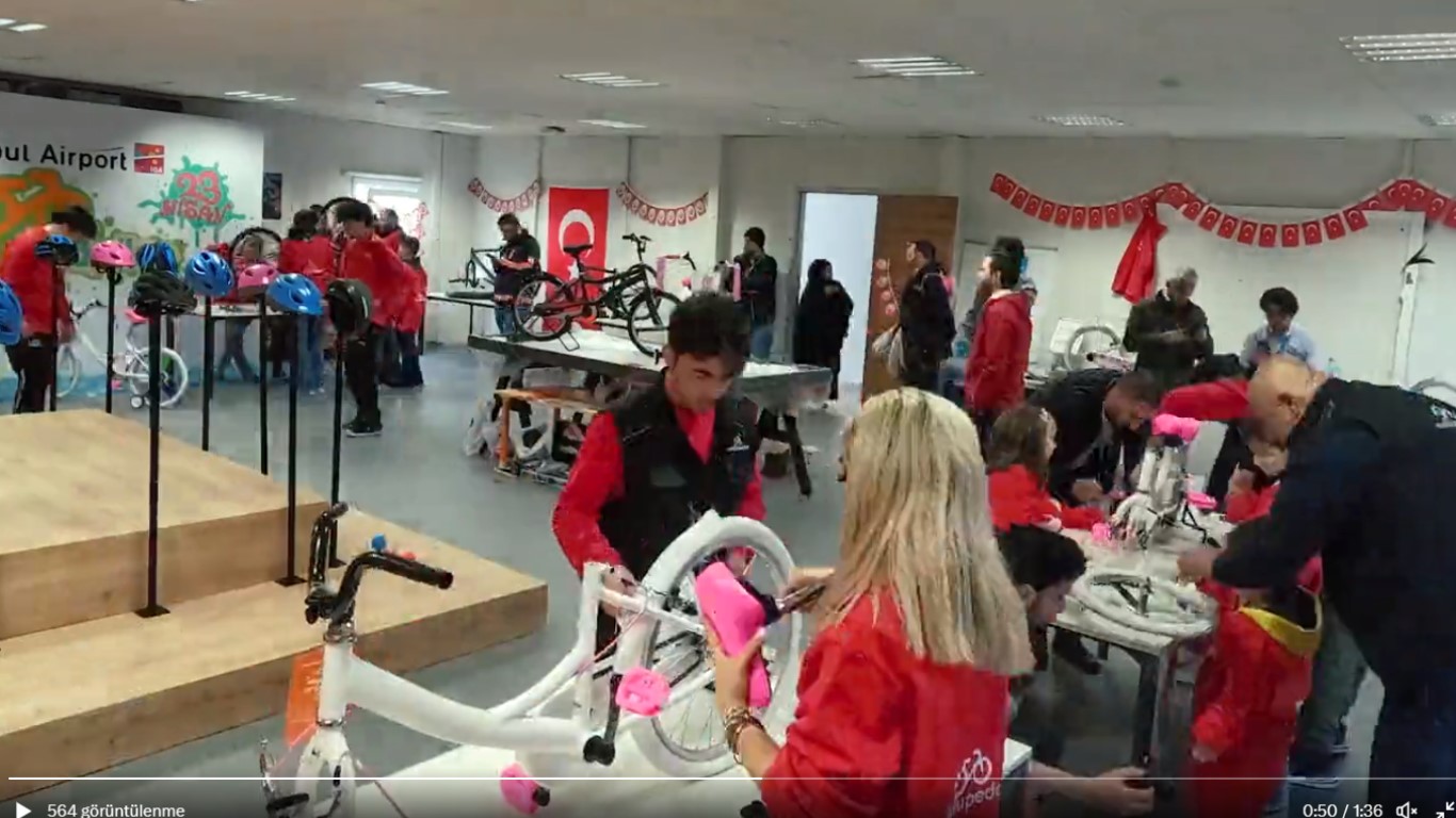 İGA İstanbul Havalimanı sosyal medya hesabından yaptığı paylaşımda ”Türkiye’nin Çocuk ve Aile dostu havalimanı olarak, geleceğimiz olan genç nesilleri önemsiyoruz. Depremlerden etkilenen çocuklarımızı mutlu etmek üzere İGA’lı çocuklarımızla güçlerimizi birleştirdik. Çocuklarımız depremzede arkadaşlarına bisikletler üretip, süslediler ve onlara armağan ettiler.23 Nisan Ulusal Egemenlik ve Çocuk Bayramımız Kutlu Olsun” ifadeleri kullanıldı.