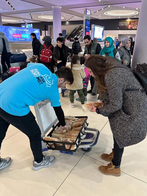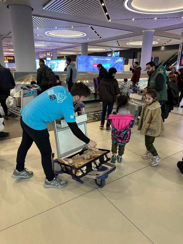 İGA, Türk Hava Yolları’nın tahliye seferleriyle İstanbul Havalimanı’na gelen depremzedelere kumanya dağıttı.
