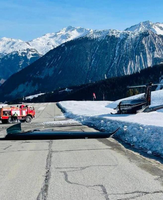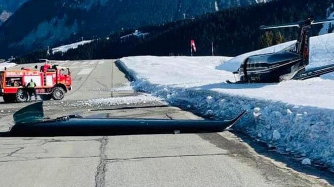 Fransız Alpleri’ndeki Courchevel Havaalanı’na iniş sırasında piste çarpan özel uçağın kanadı kırıldı ve pistten çıktı