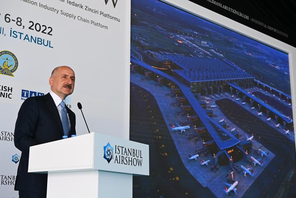 İstanbul Airshow’un açılışında konuşan Ulaştırma ve Altyapı Bakanı Adil Karaismailoğlu, “2003 yılında 50 ülkede 60 olan dış hat uçuş nokta sayımıza 281 yeni nokta ekledik. Bugün dış hat uçuş ağımız, 130 ülkede 341 noktaya ulaştı. Gökyüzünde kurduğumuz köprülerle havacılık alanında Avrasya bölgesinde lider, küresel bir havacılık merkezi olduk” dedi.