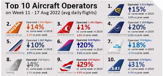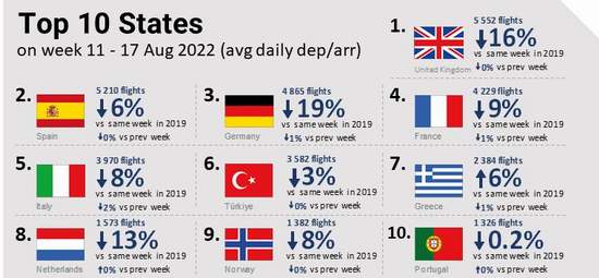 EUROCONTROL’ün Kapsamlı Değerlendirme Raporu’nda yer alan 11 – 17 Ağustos 2022 dönemi hava trafik istatistiklerine göre;