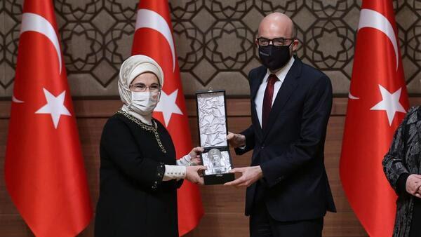 Havalimanı İşletmeci İGA CEO’su Kadri Samsunlu’ya ödülünü Cumhurbaşkanı Recep Tayyip Erdoğan’ın eşi Emine Erdoğan takdim etti
