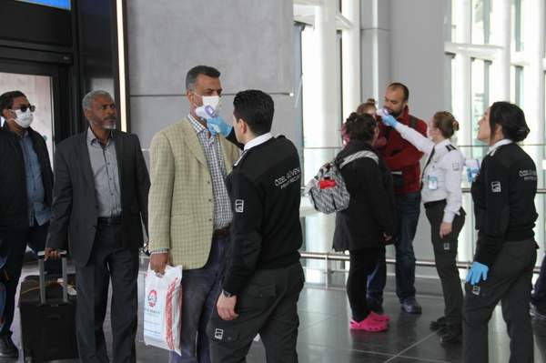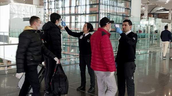 İstanbul Havalimanı’na gelen yolcu ve çalışanlar, yeni tip koronavirüs tedbirleri kapsamında ateşleri ölçülerek içeriye alınmaya başlandı.
