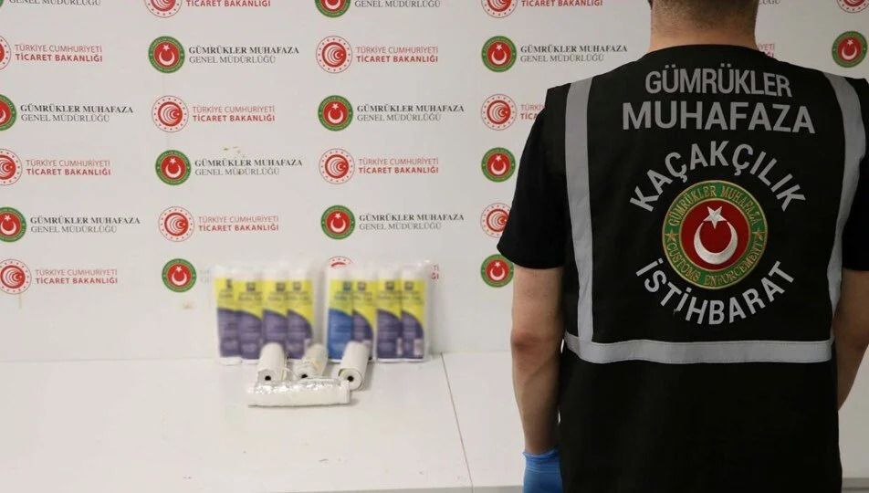 İstanbul Havalimanı’nda bir şüphelinin valizinde yapılan aramada yazar kasalarda kullanılan rulo halindeki kağıtların içine gizlenmiş 6 kilo 500 gram kokain ele geçirdi.
