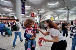 Etkinlikler kapsamında terminal binasındaki bando takımının gösterisi yolcuların büyük beğeniyle izlenirken, çocuklara da bayrak ve çeşitli hediyeler verildi.