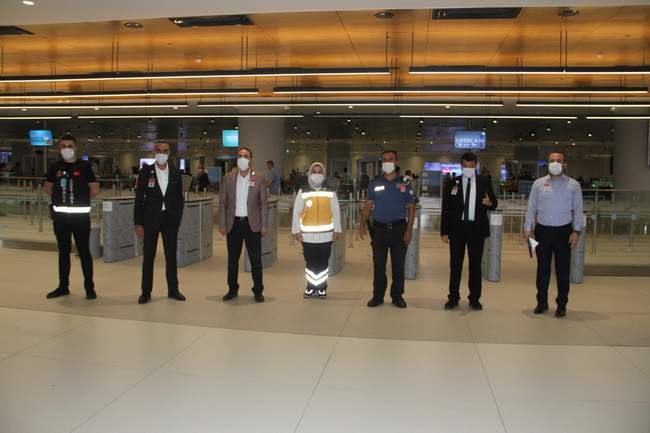 Korona virüs tedbirleri kapsamında İstanbul Havalimanı’nda yolcular, işletmeciler ve çalışanlar korona virüs denetimine tabi tutuldu.