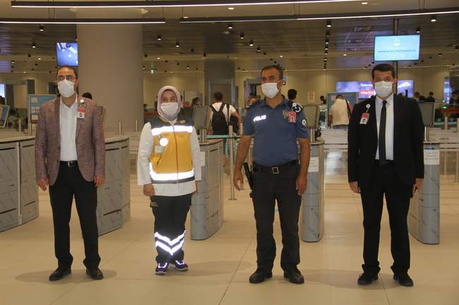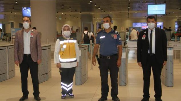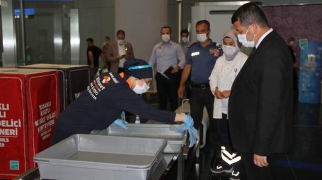 ‘Sağlık İçin, Hepimiz İçin’ sloganıyla gerçekleştirilen denetimlerde maske, sosyal mesafe ve temizlik kurallarına dikkat çekildi. Havalimanının İç hat ve dış hat terminallerinde 3 ayrı noktada 22 personellegerçekleştirilen deneyimler kapsamında havalimanında faaliyet gösteren toplam 95 işletme denetlendi. Denetim yapan görevliler, yolculara sosyal mesafe kurallarına uymaları ve maske takmaları konusunda sık sık uyarılarda bulundu. Yine terminalde bulunan işletmeler denetlenerek de dezenfektan ve hijyen konularında uyarılarda bulunuldu.