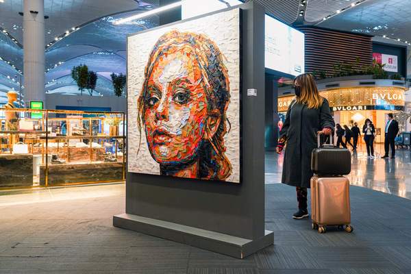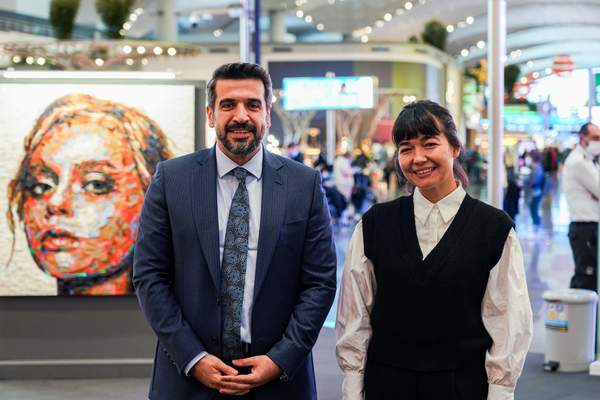 Sanatçı Deniz Sağdıç’ın atık malzemelerle ürettiği portreler İstanbul Havalimanı’nda ziyaretçilerle buluştu. İGA ve paydaşlarının markalarını taşıyan eski üniformalar, düğmeler, İstanbul Havalimanı’nda toplanan plastik kutular, poşetler gibi malzemelerin sanata dönüştüğü sergi, yolcuların yoğun ilgisiyle karşılaşıyor.