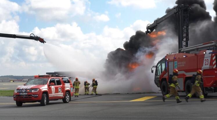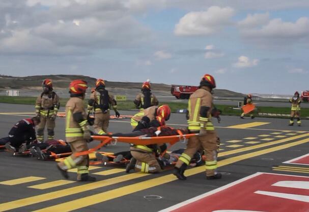 Hava Trafik Kontrol Kulesindeki görevlilerin acil durum butonuna basmasının ardından bütün ekipler alarm durumuna geçiyor. Kısa bir sürede olay yerine varan ARFF ekiplerinin müdahalesinin ardından yangın kontrol altına alınıyor. Senaryo gereği uçaktan kurtarılan 55 yaralı ise sağlık ekipleri tarafından ambulansa taşınıyor.