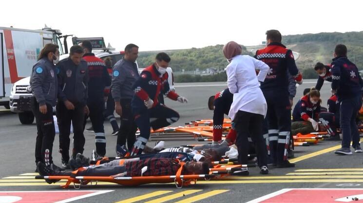 Tatbikatın senaryosuna göre, İstanbul Havalimanı’na inişi sırasında pistte bir yolcu uçağının ön iniş takımı kırılıyor ve ardından pistten çıkan uçağın iki nolu motorunda yangın çıkıyor.
