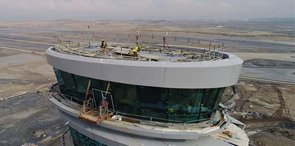 3’üncü Havalimanı’na ‘Lale’ figüründen esinlenerek inşa edilen ödüllü ‘Hava Trafik Kontrol Kulesi”nde üst katların camlarının tamamlandığı görüldü. İşçilerin metrelerce yükselikteki kulede çalışmalarına devam ettiği de havadan çekilen görüntülerle gözler önüne serildi.