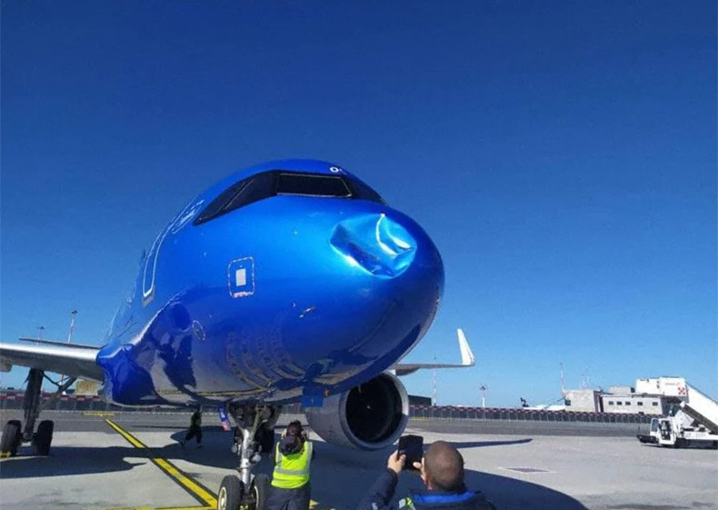ITA Airways’ın Roma-Amsterdam seferini yapan yolcu uçağı kalkışının hemen ardından kuş çarpması sonrası ciddi şekilde hasar aldı. Çarpmanın etkisiyle uçağın burnu göçtü.