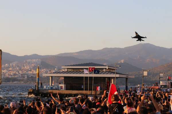 Program kapsamında Jandarma Çelik Kanatlar, AYJET Gösteri Uçuşu, ilk kadın akrobasi pilotu Semin Öztürk Şener’in akrobasi uçuşu ve HÜRKUŞ İzmir’de gökyüzüne imza attı. F-16, F-4E ve T-38 uçakları ise gökyüzünden İzmirlileri selamladı. Milli gururumuz SOLO Türk’ün İzmir semalarındaki muhteşem uçuşu ve Türk Armoni Yıldızları Orkestrası eşliğinde havada, karada, denizde aynı anda gerçekleşen Zeybek Gösterisiyle de Airshow’da coşku ve heyecan bir an olsun eksilmedi. İzmirliler tarafından büyük ilgiyle karşılanan Airshow’u Gündoğdu Meydanında milyonlar ilgiyle izlerken İzmirliler gösterileri ayrıca evlerinden de seyretti.