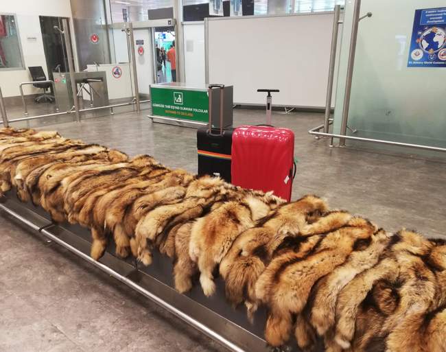 Ekipler, alınmayan bagajları X-Ray cihazıyla kontrol ettiği sırada valizin içinde Türkiye’ye girişi yasak olan tilki kürkleri olduğunu tespit etti. Valizde yapılan arama piyasa değeri yaklaşık 50 bin lira olan 40 tilki kürkü tespit edildi. Daha sonra havalimanındaki valizinin kaybolduğunu beyan eden Çinli yolcu F.T valizini teslim almak için özel yer hizmeti şirketine ait depoya geldi.