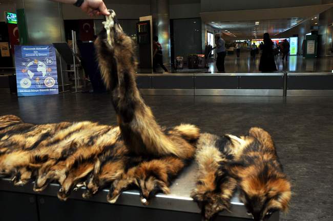 Atatürk Havalimanı’nda yurda kaçak yollarla sokulmaya çalışılan 40 tane Tilki Kürkü Gümrük Muhafaza Müdürlüğü ekiplerinin dikkatli çalışması sonucu yakalandı.