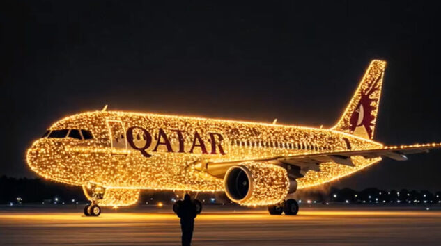 Qatar Airways, göz kamaştırıcı Noel ışıklarıyla süslenmiş uçaklarından birini sergileyen çarpıcı bir videosuyla tatil ruhunu hayata geçirdi.