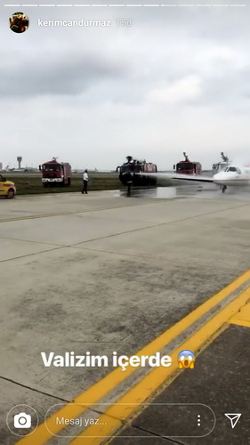 Sürtünmenin etkisi dumanların çıkması üzerine DHMİ’nin itfaiye ekipleri olay yerine gelerek müdahale etti. Uçakta ünlü soysal medya fenomeni Kerimcan Durmaz olduğu anlaşıldı. Kerimcan Durmaz, İnstagram hesabından yaşanan anları paylaştı.
