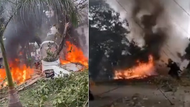 Marco Fidel Suarez Hava Üssü’nden kalktığı belirtilen uçak yere çarpmasıyla birlikte alevler içinde kaldı. Uçaktaki iki pilottan birisi hayatını kaybetti, diğer pilot ağır yaralandı.