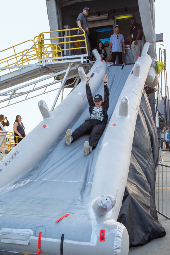 Davetliler, terminalden geçerek bir acil durum kaydırağından konser alanına ulaştı.