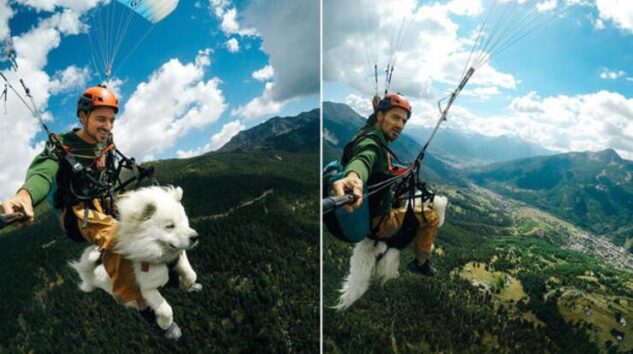 Film yönetmeni Shams, köpeği Ouka ile birlikte 1,5 aylık eğitimden sonra yamaç paraşütü yaptı.