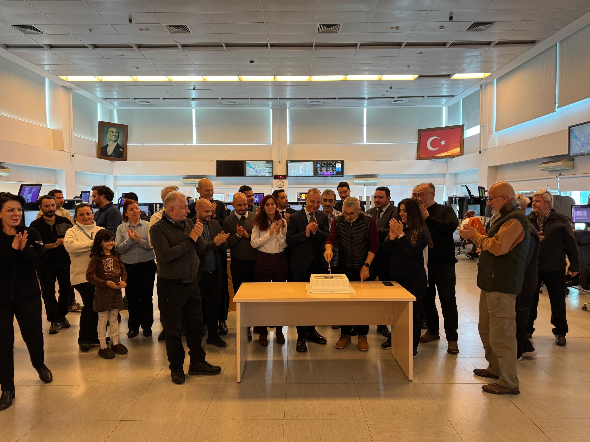 Ayhan Kartal için mesai arkadaşları Atatürk Havalimanı Hava Trafik Kulesi’nde bir veda töreni düzenledi.