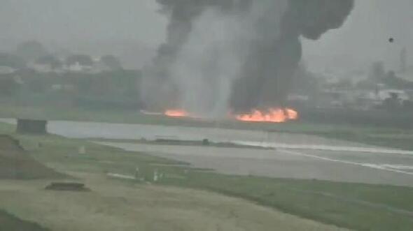 Hindistan Hava Kuvvetleri’ne ait savaş uçağı, eğitim uçuşu için kalkış yaptıktan hemen sonra kuş sürüsüne çarptı. Bir motoru duran uçak, yakıt tanklarını ve eğitim için yüklenen bombaları piste bırakmak zorunda kaldı. Pistteki patlama kameraya yansıdı.