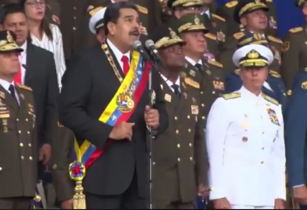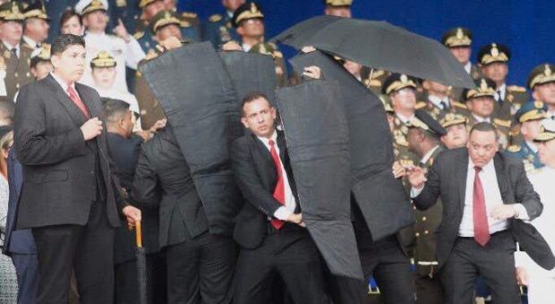 Venezuela Devlet Başkanı Nicolas Maduro’ya Caracas’ta Ordu Anma töreninde yaptığı konuşma sırasında bomba yüklü drone ile saldırı düzenlendi. Saldırıda Maduro yaralanmazken 7 asker ise yaralandı. Canlı yayınlanan törende Maduro konuşurken başkan da dahil herkesin havaya bakması dikkat çekti.Herkesi şoke eden saldırı sırasında korumalar başkana etten duvar örerek korumaya çalıştı.Törene katılanlar ise meydandan kaçtığı görüldü.Maduro,saldırganların Bogota ve Miami ile bağlantılı olduklarını,saldırganlardan bazılarının yakalandığını söyledi.