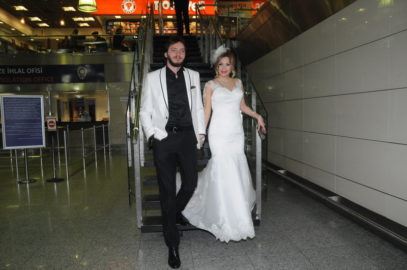 ATATÜRK HAVALİMANI’NDAN GELİNLİKLE BALAYINA GİTTİ