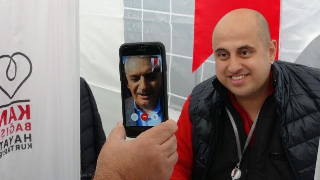 Başbakan Binali Yıldırım, İstanbul’da gerçekleştirilen kan bağışı kampanyasına destek vermek amacıyla facetime üzerinden farklı noktalardaki kampanyalara canlı bağlantı yöntemiyle katıldı. Kan vermeye gelen vatandaşlar Başbakan Yıldırım ile sohbet etme imkanı buldu.