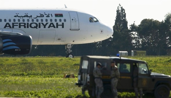 Afriqiyah Havayollarının Libya’da iç hat seferini gerçekleştiren ve 118 kişi taşıyan uçağı kaçırıldı. Kaçırılan uçak Malta Luqa Havaalanına iniş yaptı. İki saldırgan, uçağı havaya uçurmakla tehdit ediyor. Uçağı kaçıranların Kaddafi yanlıları olduğu iddiası da var.