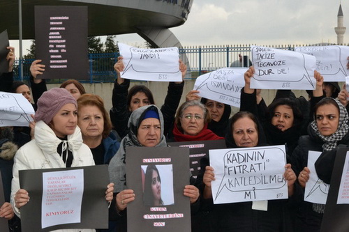 Atatürk Havalimanı Devlet Hava Meydanları İşletmesi İstanbul Başmüdürlüğü önünde bir araya gelen KESK ve MEMUR-SEN üyesi çalışanlar, acımasızca katledilen üniversite öğrencisi Özgecan Arslan’ın katilini protesto ettiler, lanetlediler.