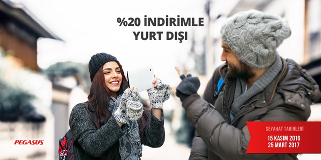 3-6 Ekim tarihlerinde Pegasus’tan bilet alacak misafirler, 15 Kasım 2016 – 25 Mart 2017 arasında gerçekleştirecekleri tüm yurt dışı uçuşlarını yüzde 20 indirimli yapacak.