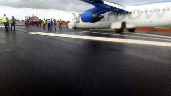 Gana’da iç hat seferini yapan uçak, pist sonundaki bariyere çarparak pistten çıktı.
