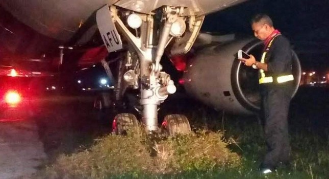 Kuala Lumpur seferini yapacak olan yolcu uçağı, kalkış yapacağı piste doğru giderken, kayarak toprak zemine çıktı.