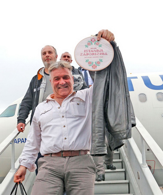 TK 1469 sefer sayılı uçak Zaporijya Havalimanı’na inişinde su takı ile karşılandı. Belediye Başkanı, Bölge Konseyi Başkanı ve Odesa Başkonsolos Vekili ile Türkiye Cumhuriyeti Odesa Başkonsolos vekili karşılamada bulundu.