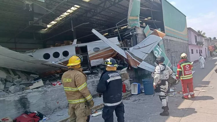 Meksika’nın Morelos eyaletindeki yer alan Temixco kentinde yerel saatle 13.00 sularında çift motorlu Beechraft King Air 90 tipi bir küçük uçak süpermarketin üzerine düştü.