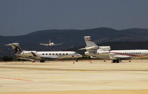 Milas-Bodrum Havalimanı’nın bir bölümü özel jetlere ayrılırken, milyon dolarlık özel yolcu jet uçakları yolcu taşıma kapasitesine göre birer servet değerinde.