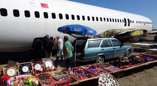 Trabzon Havalimanı’na geçen yıl iniş yaparken kontrolden çıkıp, denize 25 metre kala yamaca saplanan ve bir daha uçamayacağına karar verilmesinin ardından ‘Millet kıraathanesi’ yapılmak üzere Yomra ilçesine götürülen Boeing 737-800 tipi yolcu uçağı, konulduğu pazar yerinde kaderine terk edildi.
