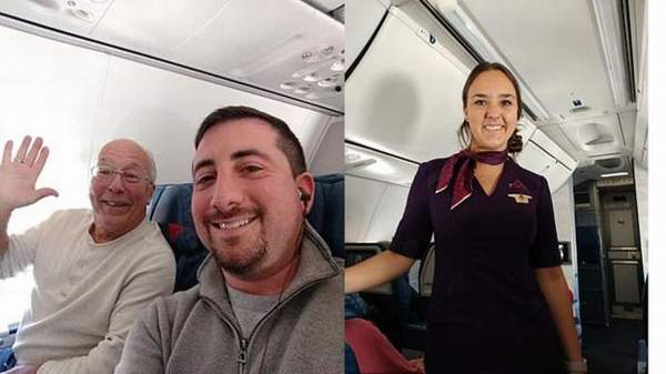 Mike Levy adlı yolcunun “Eve dönüş yolculuğunda Hal’in yanında oturma onurunu yaşıyorum. Hal, Noel’de çalışmak zorunda kalan uçuş görevlimiz Pierce’ın babası” dediği mesajı 27 bin kezden daha fazla paylaşıldı.