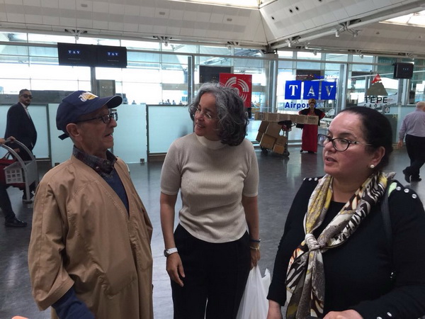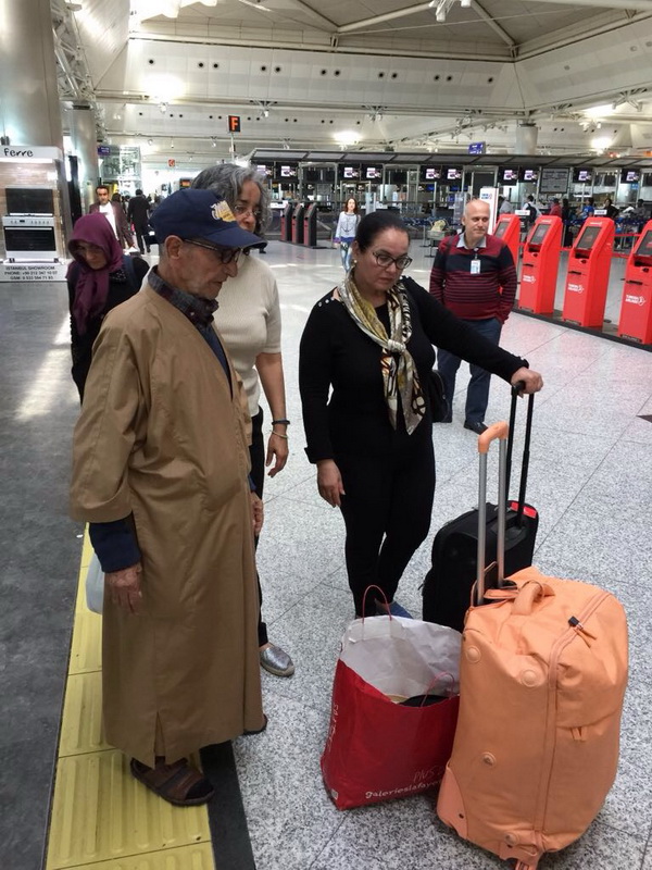 Ülkelerine gitmek için geldikleri Atatürk Havalimanı’nda yaşlı babalarını kaybeden Fas’lı Rukiye, Zara ve Halime babaları Brahım El Mohtıje bulununca sevinçten boynuna sarıldı.