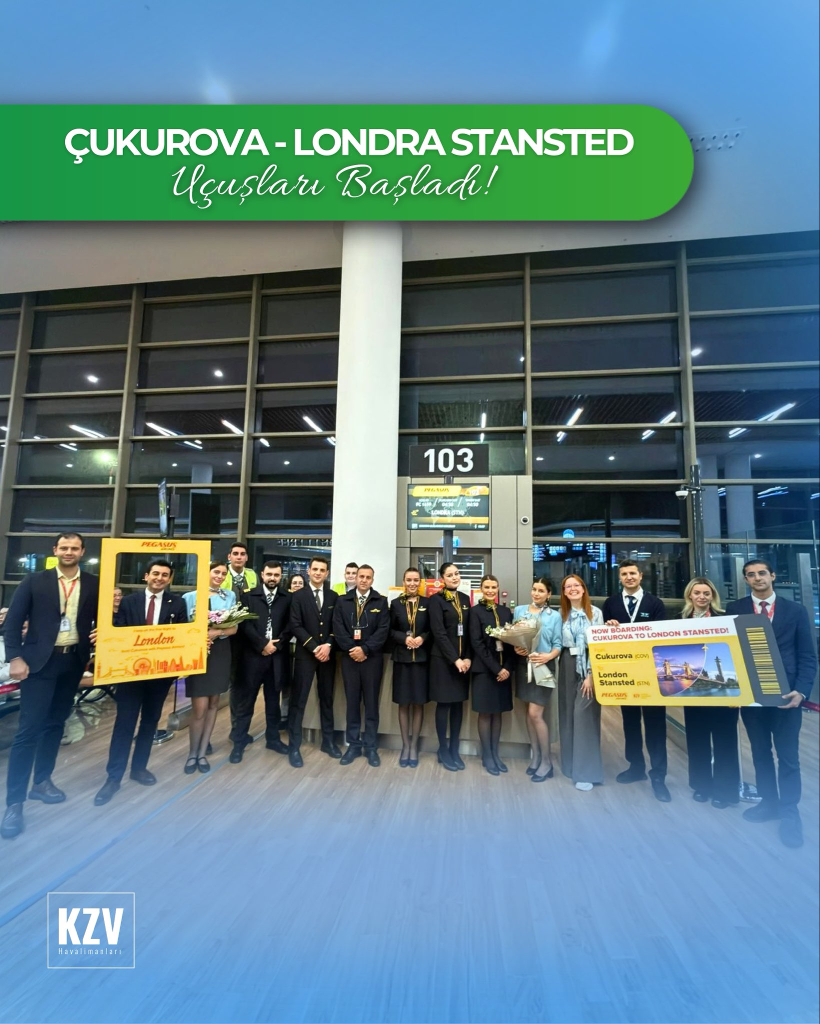 Pegasus Hava Yolları, Çukurova Uluslararası Havalimanı’ndan Londra’nın Stansted Havalimanı’na direkt seferlere başladı.