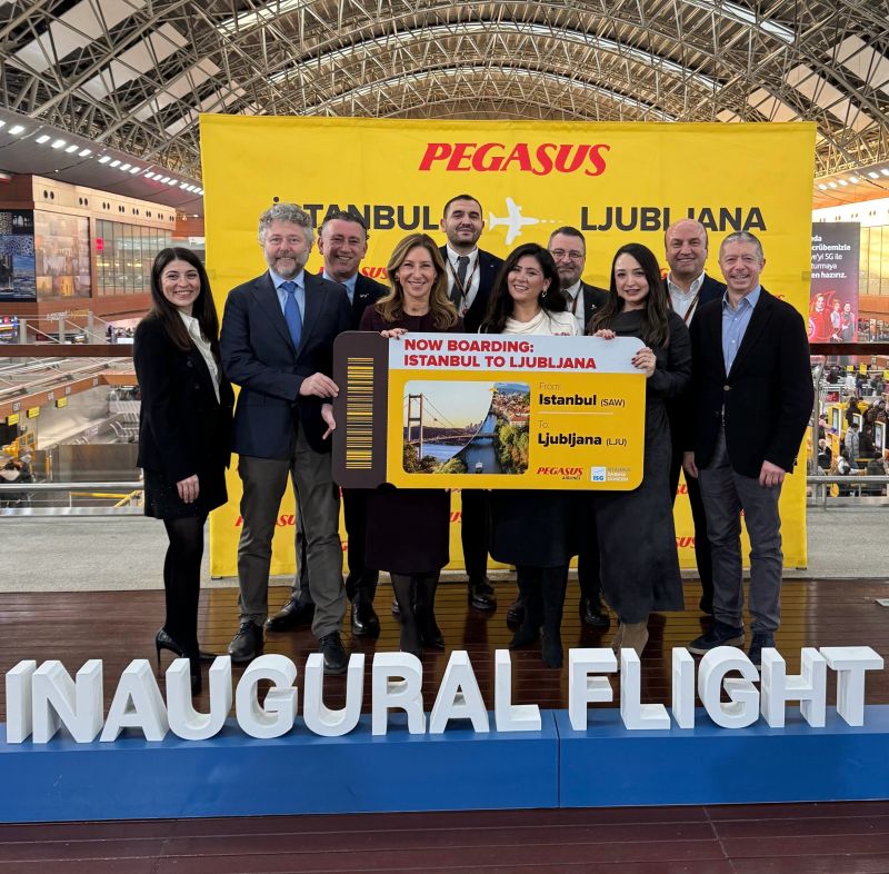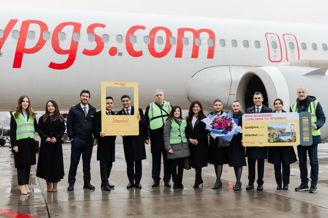 Pegasus Hava Yolları’nın, Ljubljana hattının açılışı dolayısıyla Sabiha gökçen Havalimanı2nda Slovenya Büyükelçisi Gorazd Rencelj, Fahri Konsolos Mustafa Başar Arıoğlu, Pegasus Hava Yolları Genel Müdürü Güliz Öztürk, Ticaret Genel Müdür Yardımcısı Onur Dedeköylü, Satış Direktörü Emre Pekesen, ISG Ticari İşler ve Strateji Genel Müdür Yardımcısı (CCSO) Kerem Maybek, ISG Mali İşler Genel Müdür Yardımcısı (CFO) Hanita Ahmad ve ilgililerin katılımıyla tören düzenlendi.